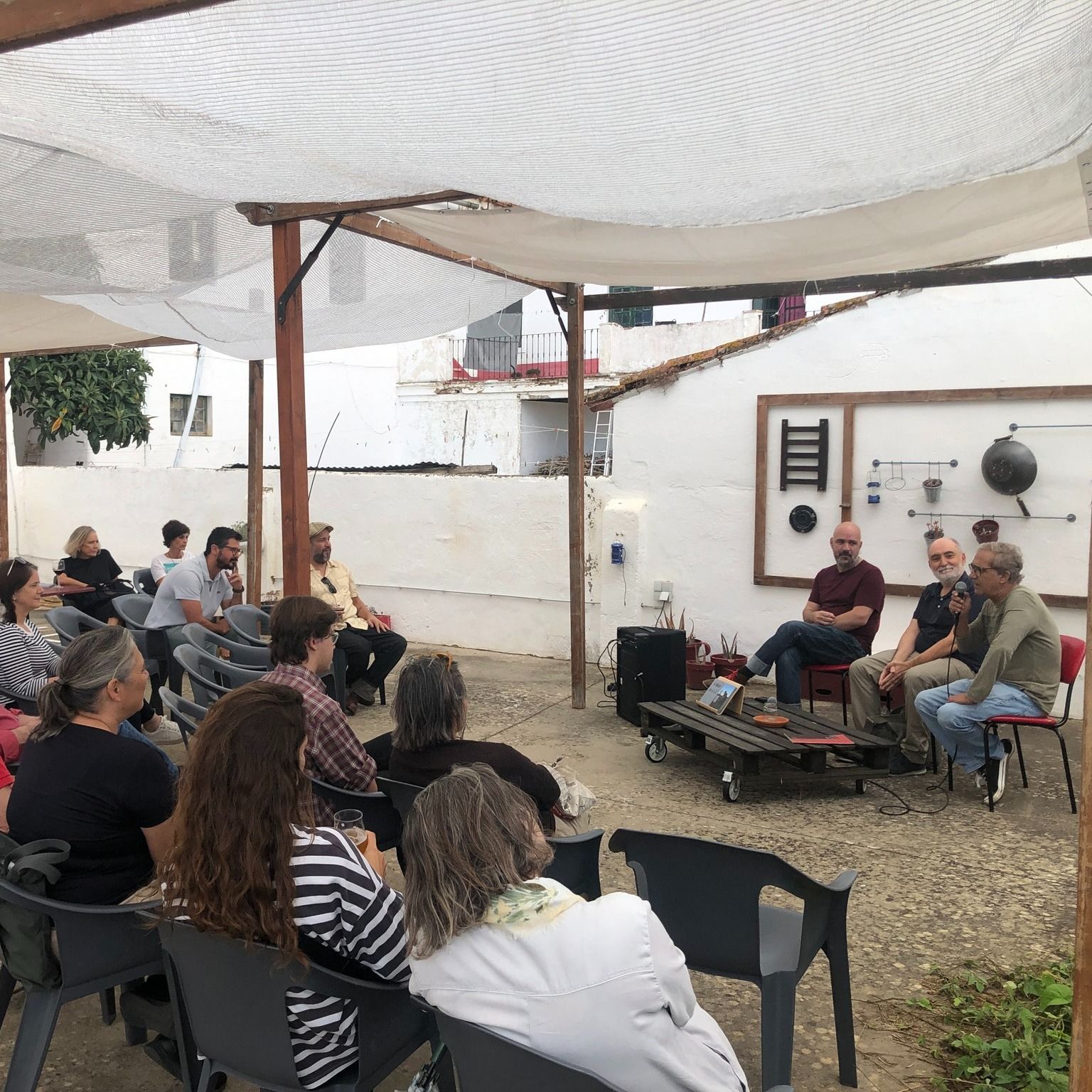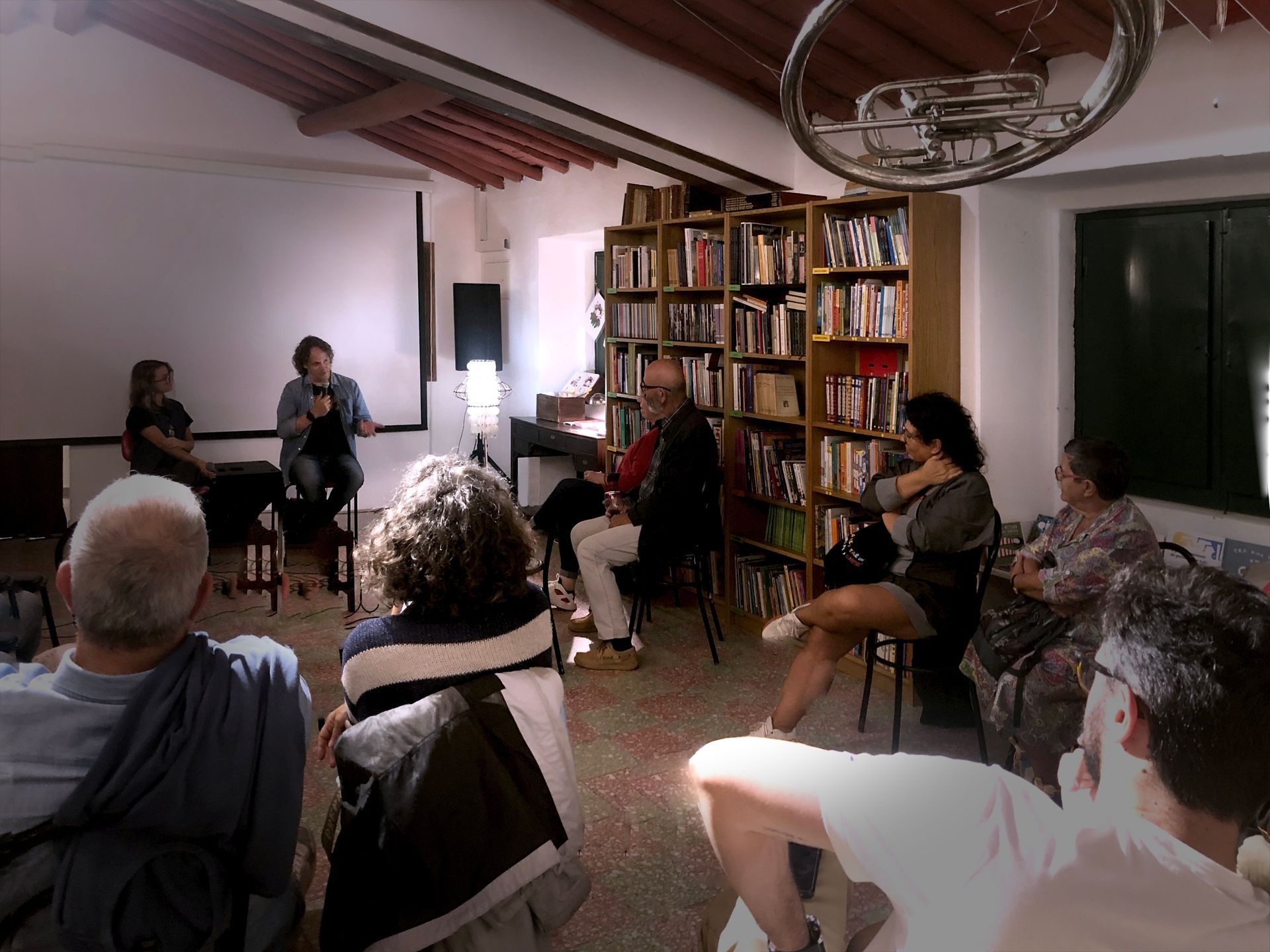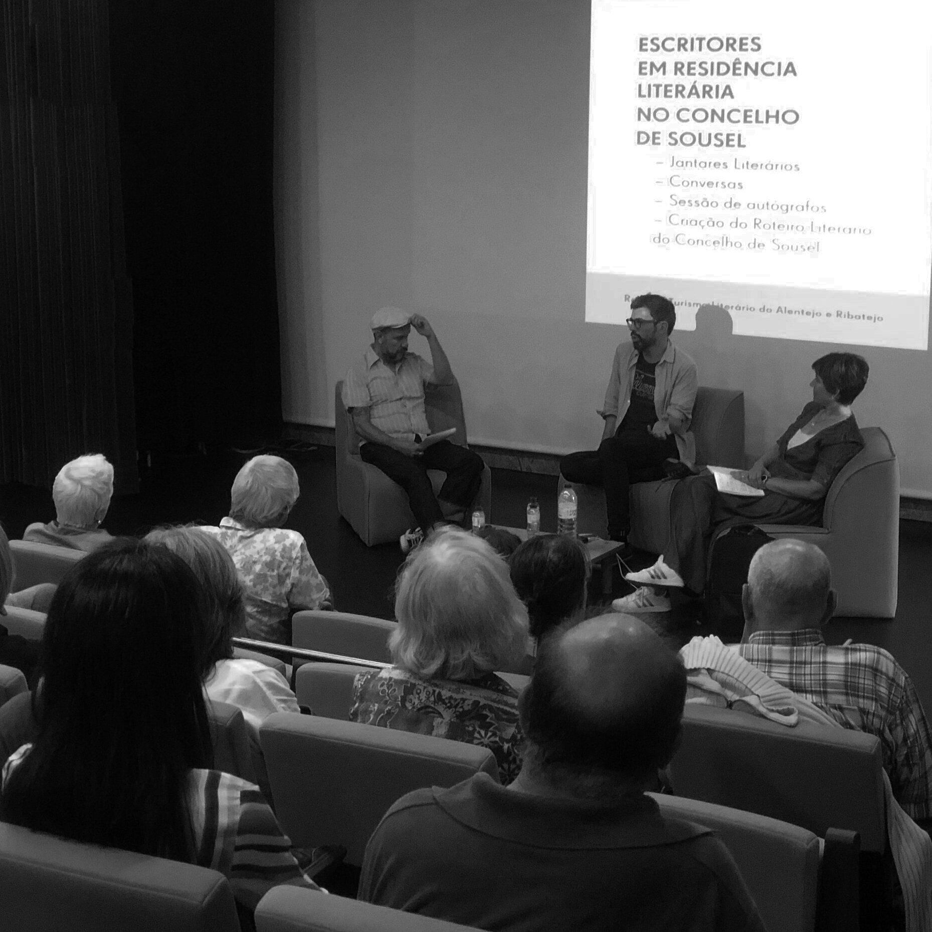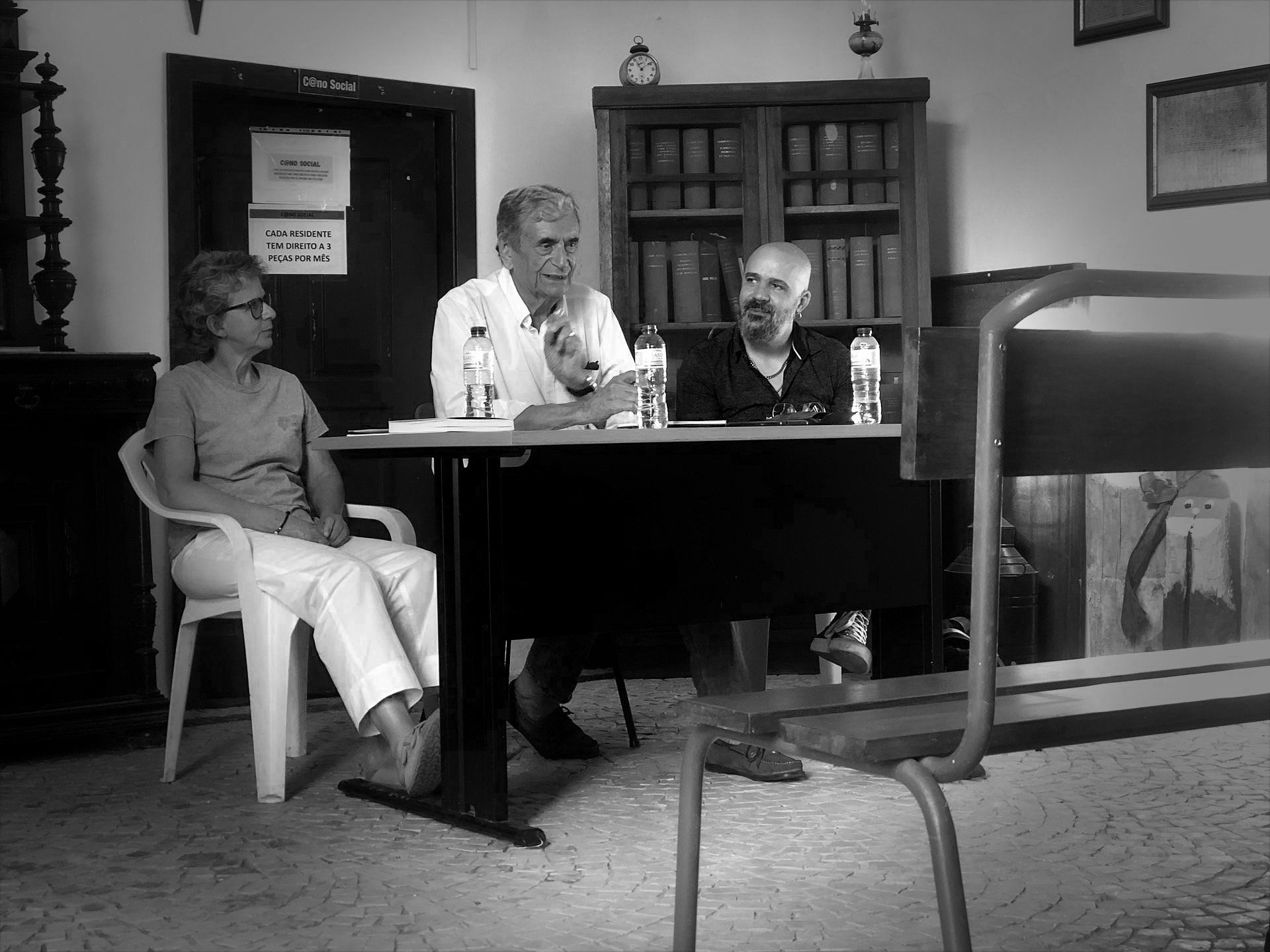 Conversa entre os escritores Álvaro Laborinho Lúcio e Afonso Cruz e a professora Teresa Gomes, na Junta de Freguesia de Cano.