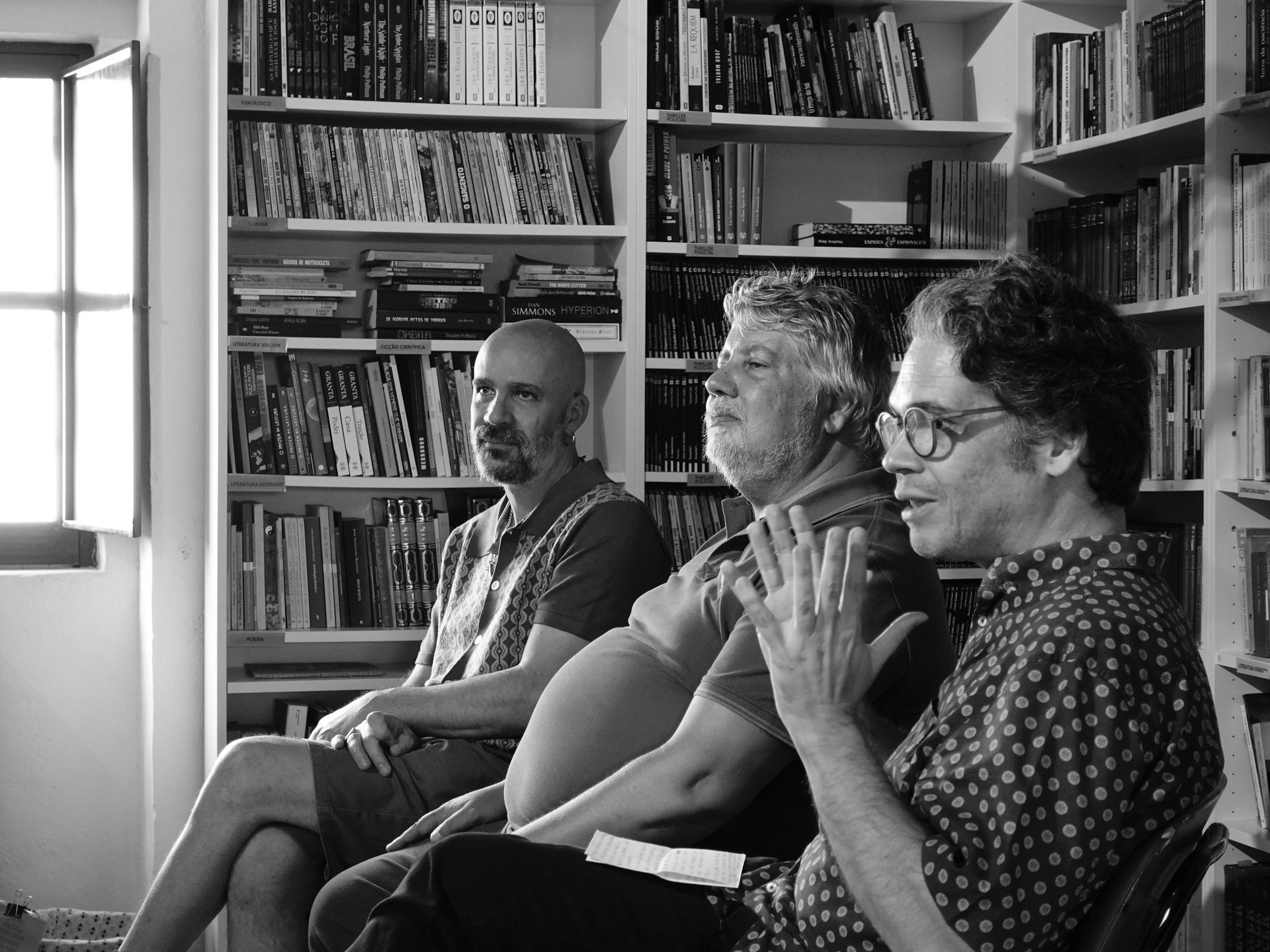 Conversa entre os escritores Rui Zink e Afonso Cruz, e a bibliotecária Susana Farinha na sede da Era Uma Voz®.